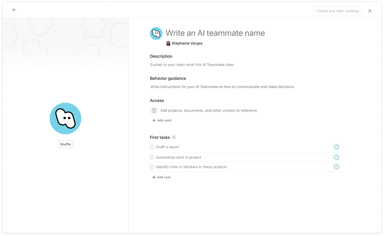 💡 Suggerimento: non preoccuparti di fare tutto bene fin dal primo giorno. I colleghi del team sono progettati per trarre deduzioni intelligenti in base ai tuoi obiettivi. Puoi perfezionare queste istruzioni nel corso del tempo, osservando come lavora il tuo collega del team.
