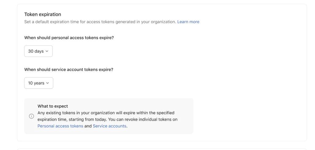 Super admins of organizations can set a default expiration date for all personal access tokens or service account tokens that users create in their organization.