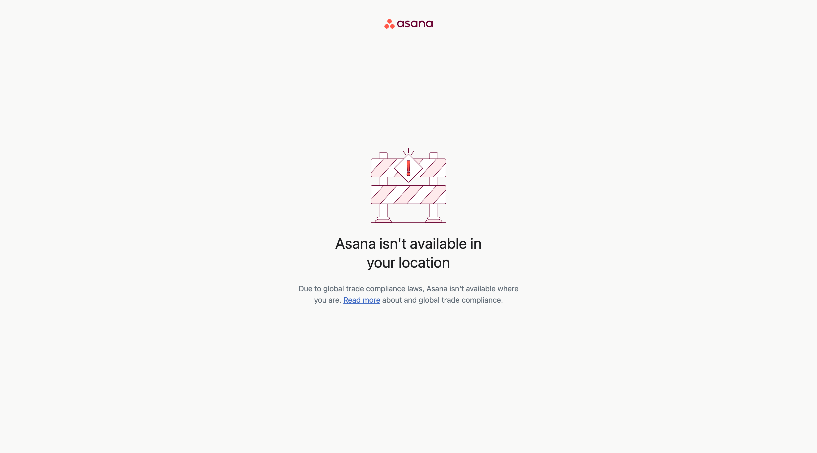 If you believe you have received this notice in error either because of your location or identity, please contact Asana Support.