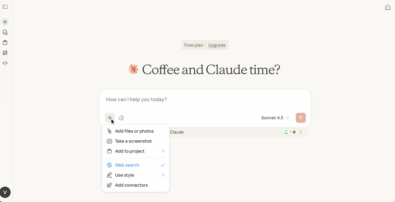 - Open Claude and click the + icon
