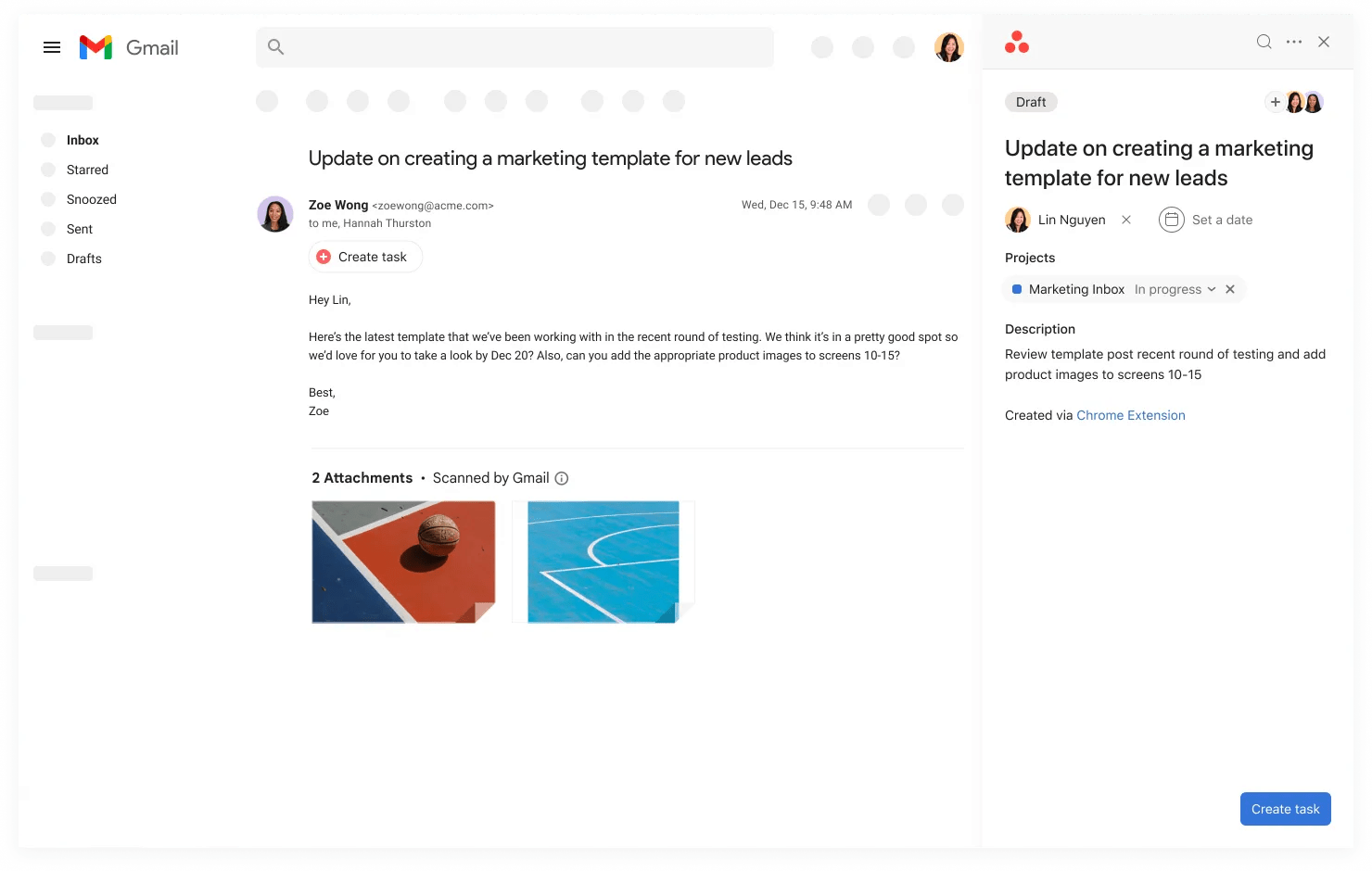 GmailでChrome拡張機能を使用している場合は、このショートカットを使用して、Asanaで受け付けワークフローを合理化しましょう。