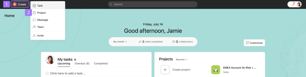 Projects in Asana help you organize your team's work toward specific goals. Whether you're planning a product launch, managing a marketing campaign, or tracking ongoing processes, projects provide the structure you need to keep everyone aligned and productive.