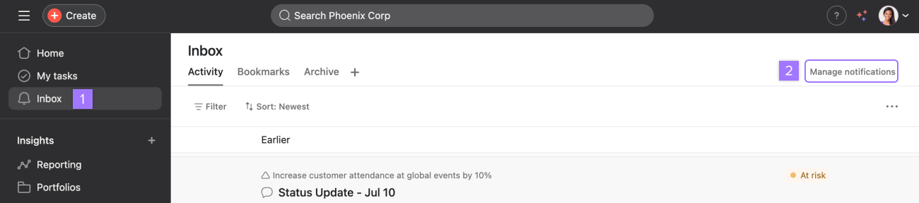 To stay informed on activity in Asana, you can receive email notifications or use your inbox.