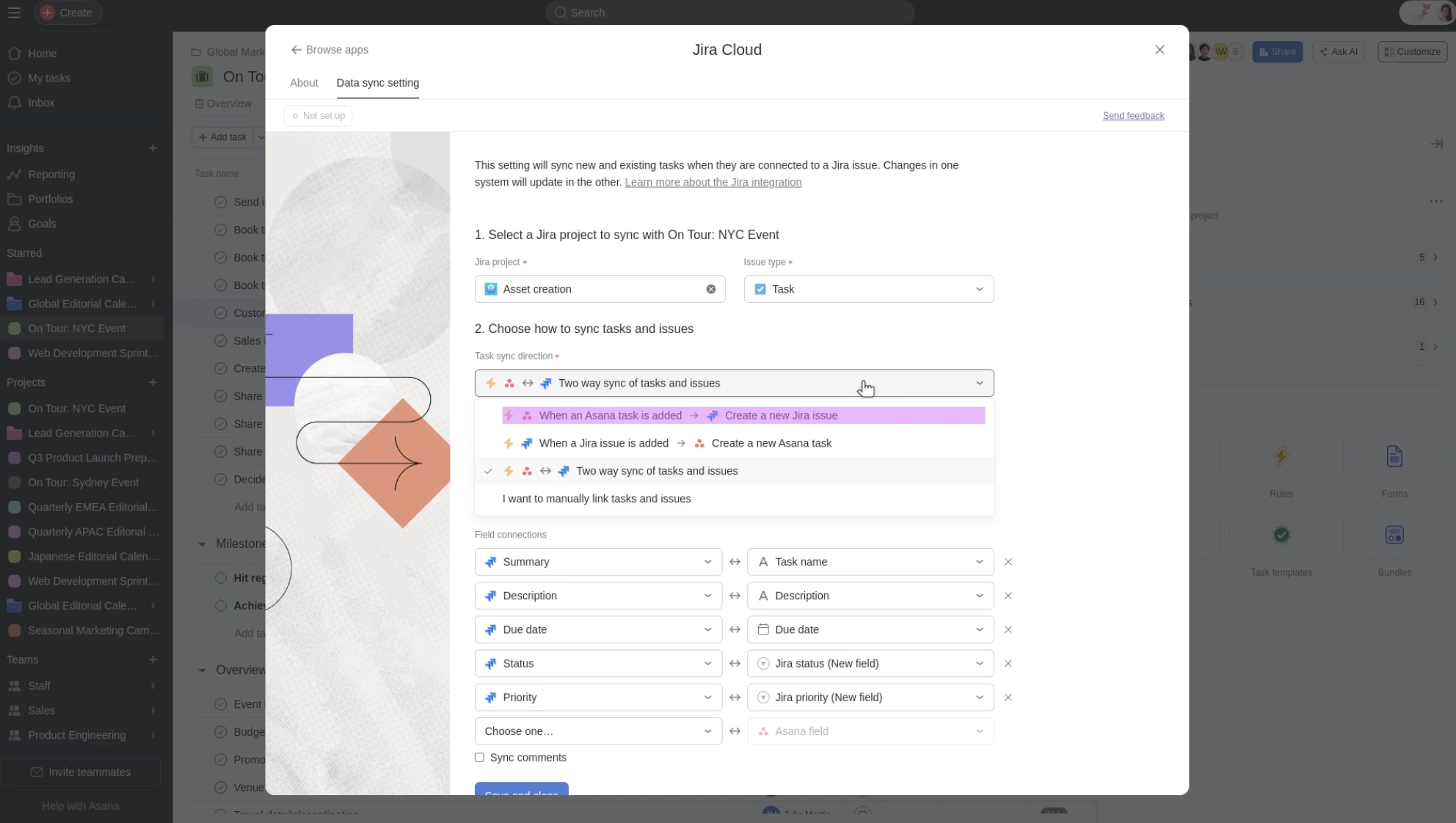 - Choosing triggers for creating calendar events based on Asana tasks.