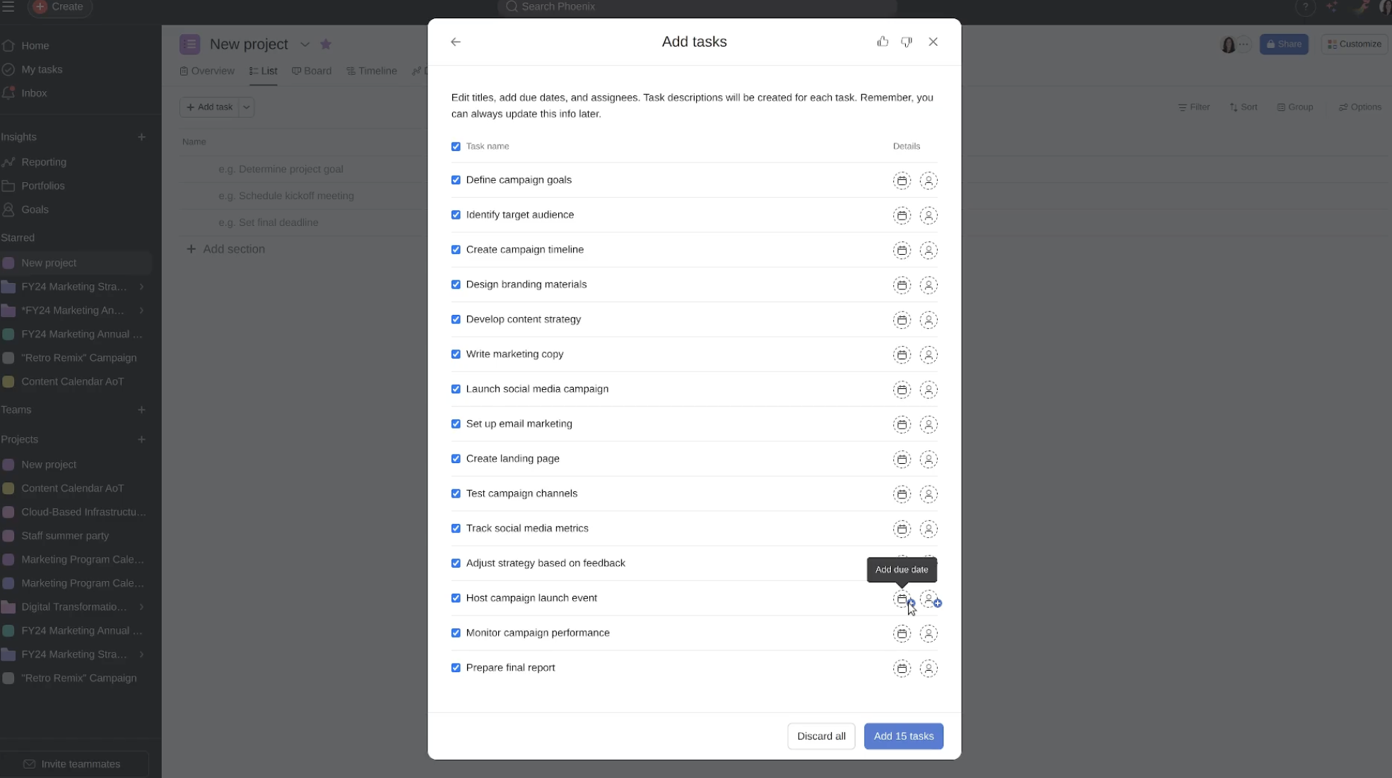- Using Asana AI to receive goal improvement suggestions.