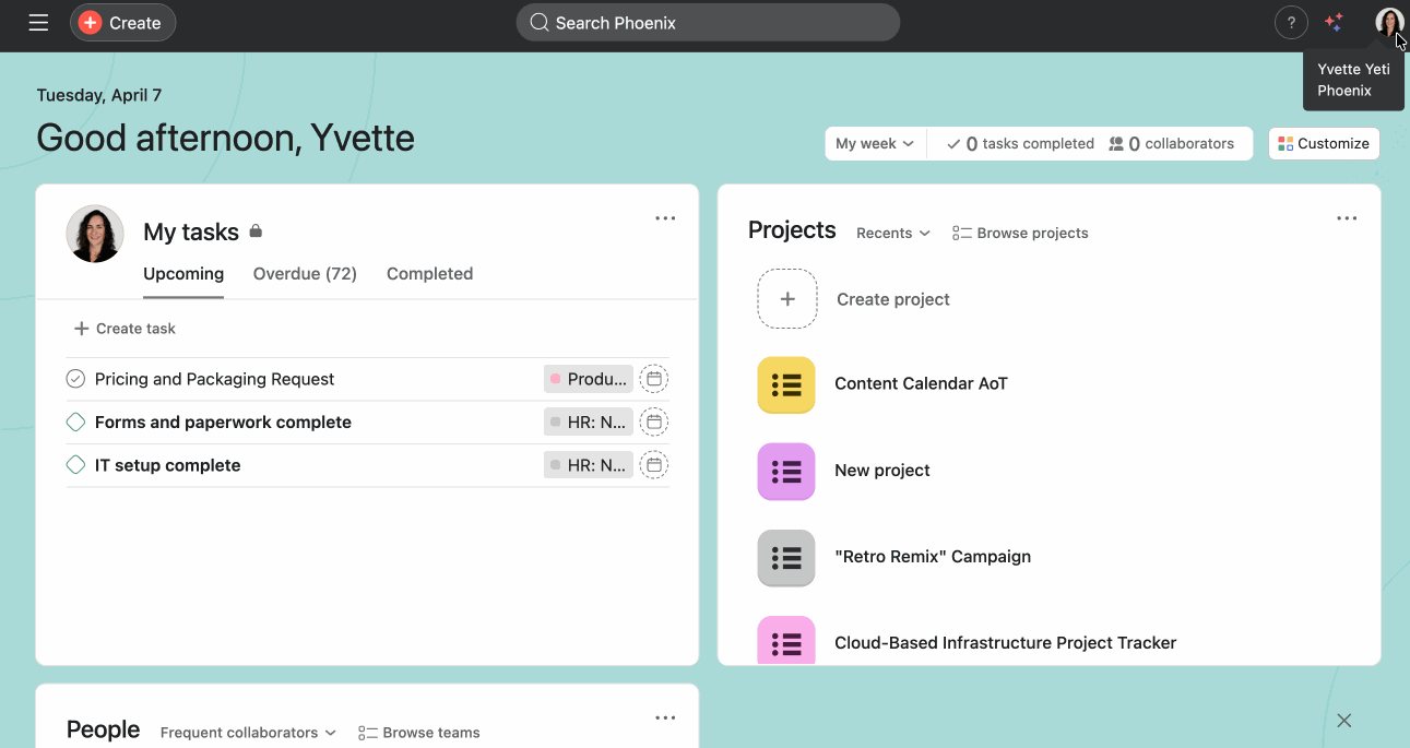 不在予定の設定モーダルを使用して、今後の不在予定と過去の不在予定を確認できます。日程やメモを編集する場合は、該当するエントリを選択します。計画が変更になった場合は、ゴミ箱アイコンをクリックしてエントリを削除します。変更はすぐに反映され、Asana 全体でステータスが更新されます。
