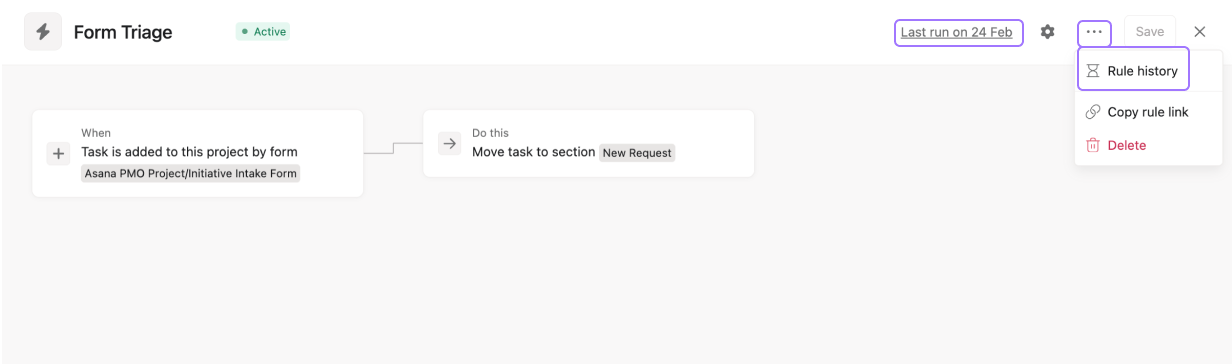 Permissions to edit rules will be based on a user’s project or portfolio permissions. That means users with access to edit workflows on a project or portfolio can edit any rules that live in that project or portfolio. Rule creators cannot restrict users with project or portfolio permissions from editing rules.