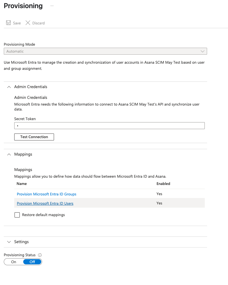 現在設定已完成,您可以將使用者新增至其相應的群組以指派角色。當下一個佈建週期運行時,此設定將為使用者指派相應的角色(或者,您可以依需求佈建),您將在 Asana 中看到此設定。