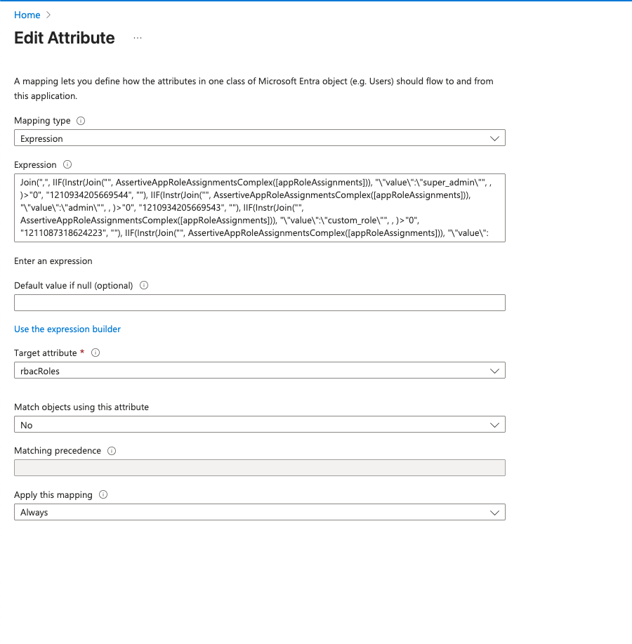 重要提醒:運算式中的角色順序將決定角色指派的優先順序。頂端的角色將具有更高的優先順序。稍後,如果使用者位於多個角色群組中,他們將獲得此處定義的最高優先順序角色。