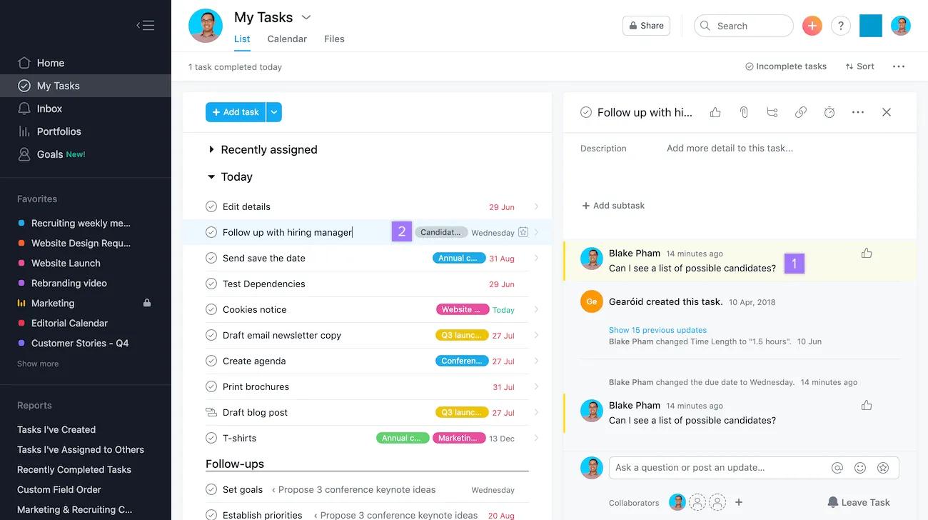 Comment on a task to ask questions, provide extra information, or offer insight.