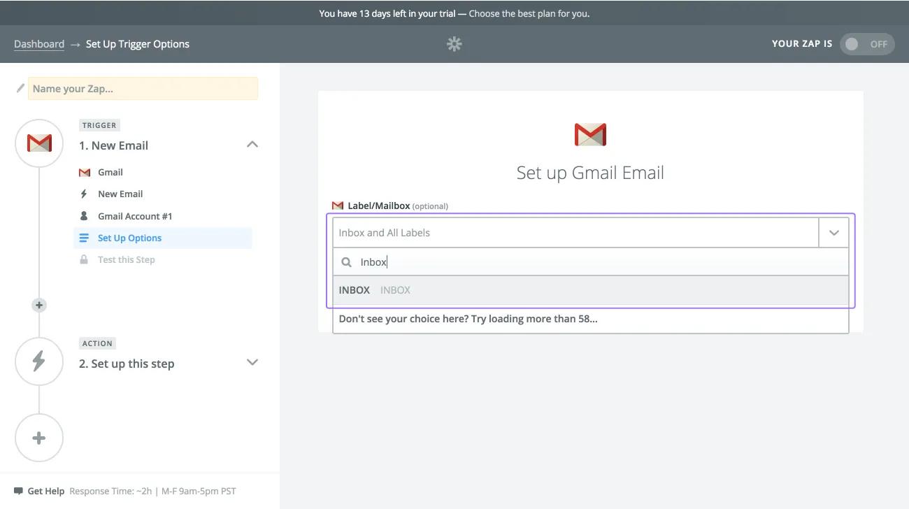 Begin typing the Gmail folder's name you wish to use for this zap and select it in the typeahead that appears