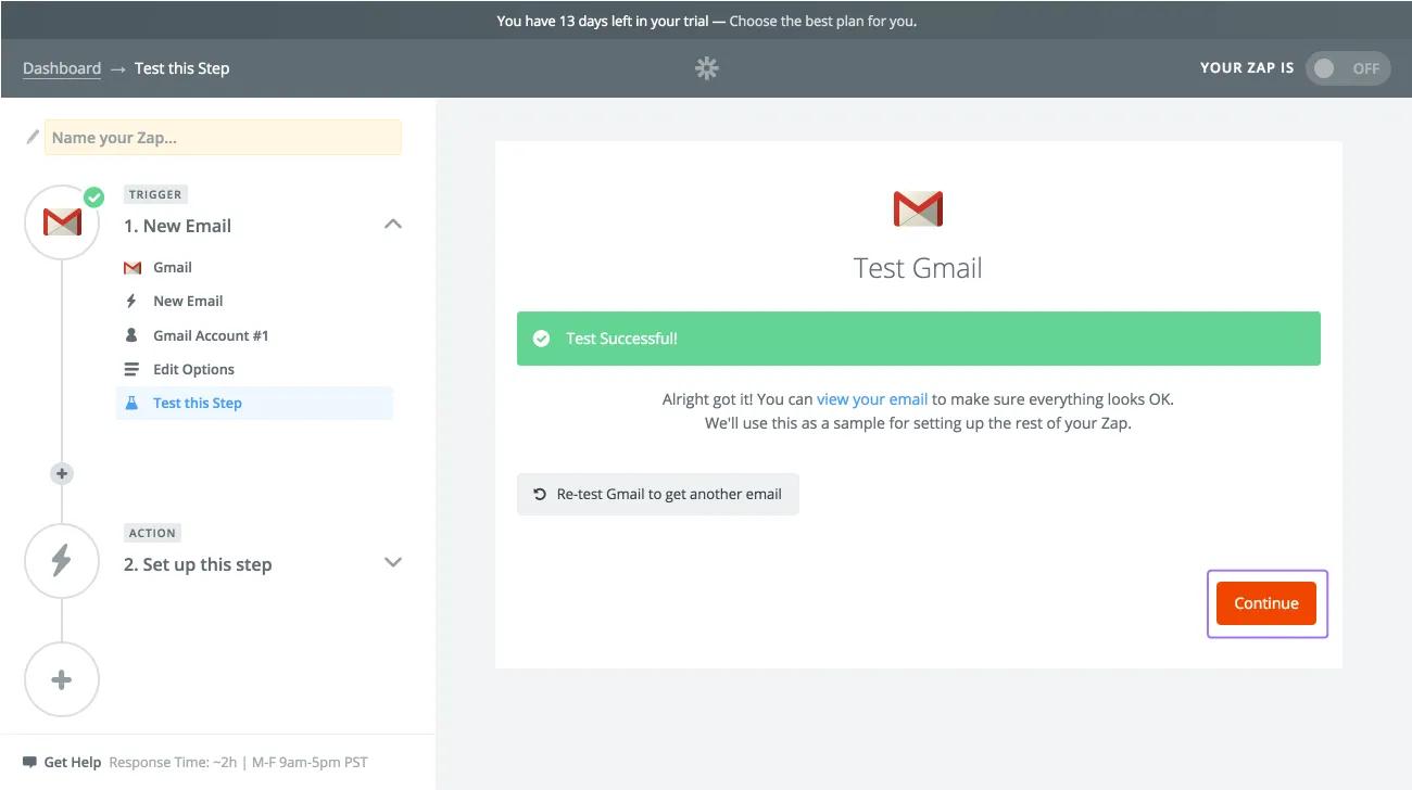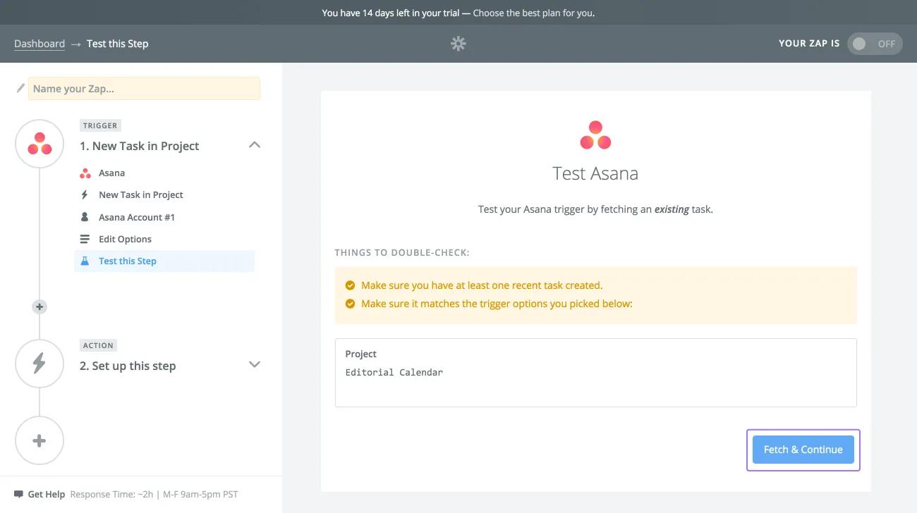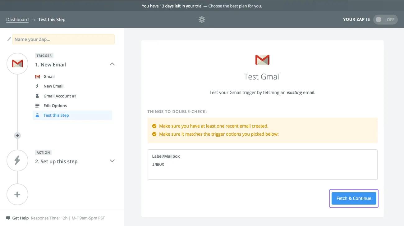 Next, click Fetch & Continue to test if the trigger is working correctly.