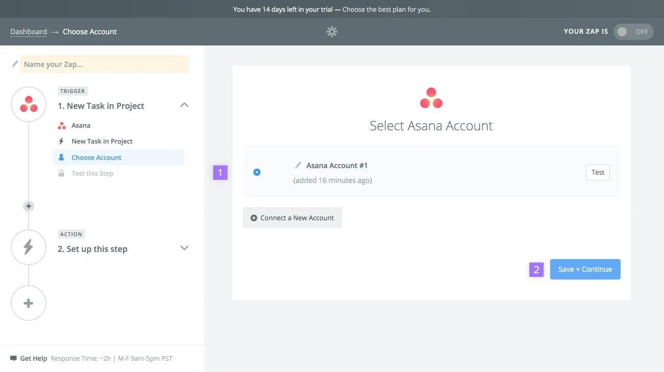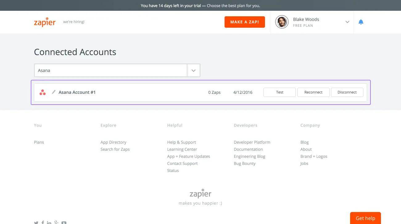 Once logged into your account, your first step is to connect your Asana account with Zapier.